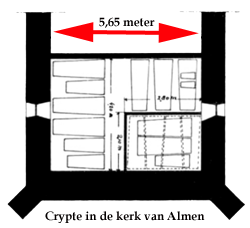 De meeste crypte's vindt je in Katholieke kerken onder het priesterkoor, hierin bewaarde men relieken en begroef men geestelijken of andere belangrijke personen. De crypte in de kerk van Almen is echter aangelegd na de reformatie door protestanten, die niet zoveel hadden met de Katholieke gebruiken. Vanaf 1 januari 1829 was het verboden om nog overledenen in kerken te begraven, dezen werden nu alleen nog op het kerkhof rond de kerk begraven. Rond 1849 blijkt er geen familie meer te zijn die de crypte onderhoud en besloot men om deze definitief af te sluiten toen de kerk verbouwd en uitgebreid werd.