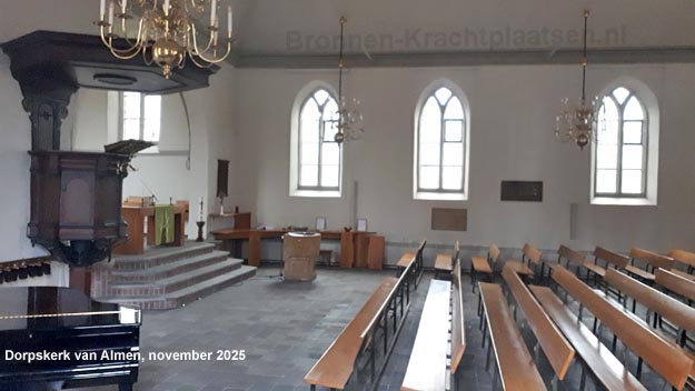 Begin november 2025 ben ik naar Almen geweest om de Dorpskerk te bezoeken. Het was een gezellig dorp met aan de ene kant van de kerk een huisarts en aan de andere kant van de kerk een museum. De ventilatiegaten waren zichtbaar aan de achterzijde van de kerk onder het priesterkoor. Doch toen ik hierdoor naar binnen wou kijken was er niet zoveel te zien, alleen het ventilatiegat aan de andere kant van de crypte was zichtbaar. Ik kon alleen het ventilatiegat aan de kant van de huisarts goed fotograferen, aan de andere kant van de kerk stond daar een auto geparkeerd. Daarom heb ik helemaal bovenaan een foto uit het publiek domein van de kerk geplaatst waarop het ventilatiegat wel zichtbaar is.