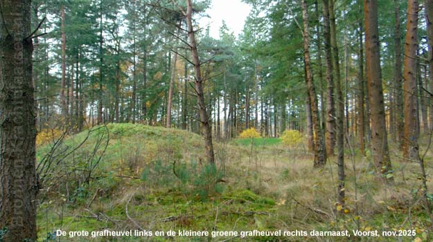 Op een gegeven moment kwam ik bij drie grafheuvels, een grote en een wat kleinere links van het pad, en een grote rechts van het pad.