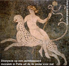 Dionysios kan echter ook gevaarlijk zijn wanneer men hem tegenwerkt, zo word hij wel afgebeeld zittende op een jachtluipaard,