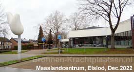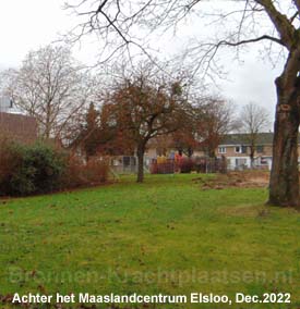 Eind december 2022 ben ik naar Elsloo geweest vanwege de beschrijving van een krachtplaats door Wigholt Vleer. Ter plaatse trof ik het Maaslandcentrum aan met daarachter een kinderspeelplaats met veel groen. De school die hierachter stond was gesloopt, verder was dit blok omgeven door een woonwijk. Nadat ik hier rondgelopen had en wat foto's had gemaakt om zodoende de omgeving op me in te laten werken, ben ik met de wichelroede gaan rondlopen. Deze wees inderdaad zoals Wigholt Vleer beschreef naar een krachtcentrum dat wanneer je voor het Maaslandcentrum staat, er links achter ligt op de kinderspeelplaats. Niet echt een geschikte locatie voor een meditatie dus, wellicht dat de kinderen die hier regelmatig komen zich spelenderwijs opladen met de energie van dit krachtcentrum. Jammer dat men niet met meer oog voor de historie met deze locatie omgegaan is.  (Zie Vleer Blz.190).