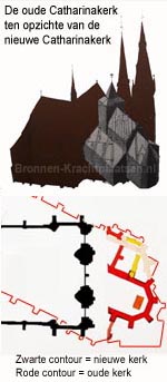 De oude Catharinakerk was in tegenstelling tot de huidige Catharinakerk, precies oost-west georiënteerd.