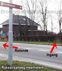 De ingang staat aangegeven met een bruin bordje met Huldtoneel (zie foto rechts).