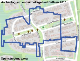Zoals op het kaartje hiernaast te zien bevonden de meeste graven zich onder de huidige bebouwing en niet onder het hedendaagse archeologische
