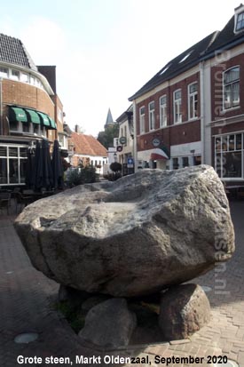 Deze grote steen die nu op de markt van Oldenzaal ligt, is ergens vóór het 1642 na nul daar geplaatst,