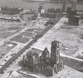 Na bombardementen gedurende de Tweede Wereldoorlog lag Rotterdam grotendeels plat. Ook de Laurenskerk raakte zwaar beschadigt,